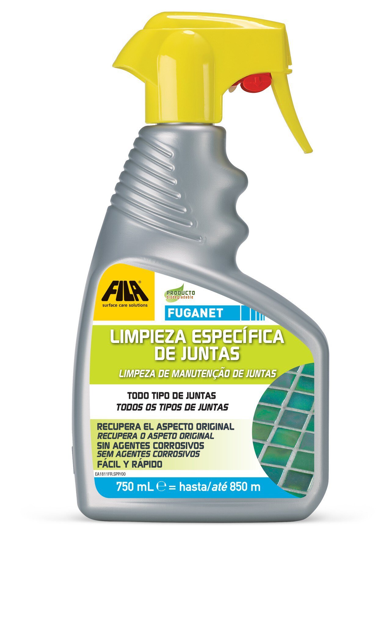 Detergente limpiador de juntas. Limpia a fondo las juntas de azulejos cerámicos esmaltados, gres porcelánico y mosaicos vítreos (gresite). Apto para todo tipo de juntas. Fácil de usar gracias a su práctico envase con asa ergonómica y atomizador. No ataca ni mancha los azulejos. No contiene ácidos ni hipoclorito de sodio. Biodegradable.