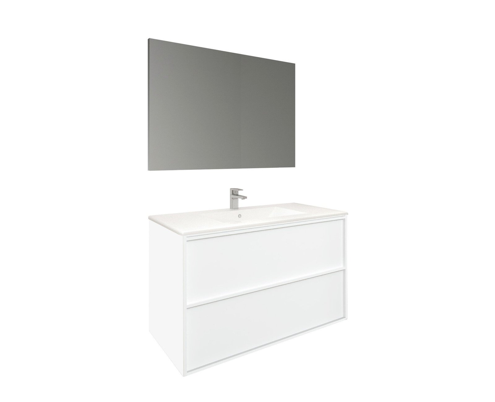 Conjunto Baho Frame 2 cajones suspendido 80 blanco mate