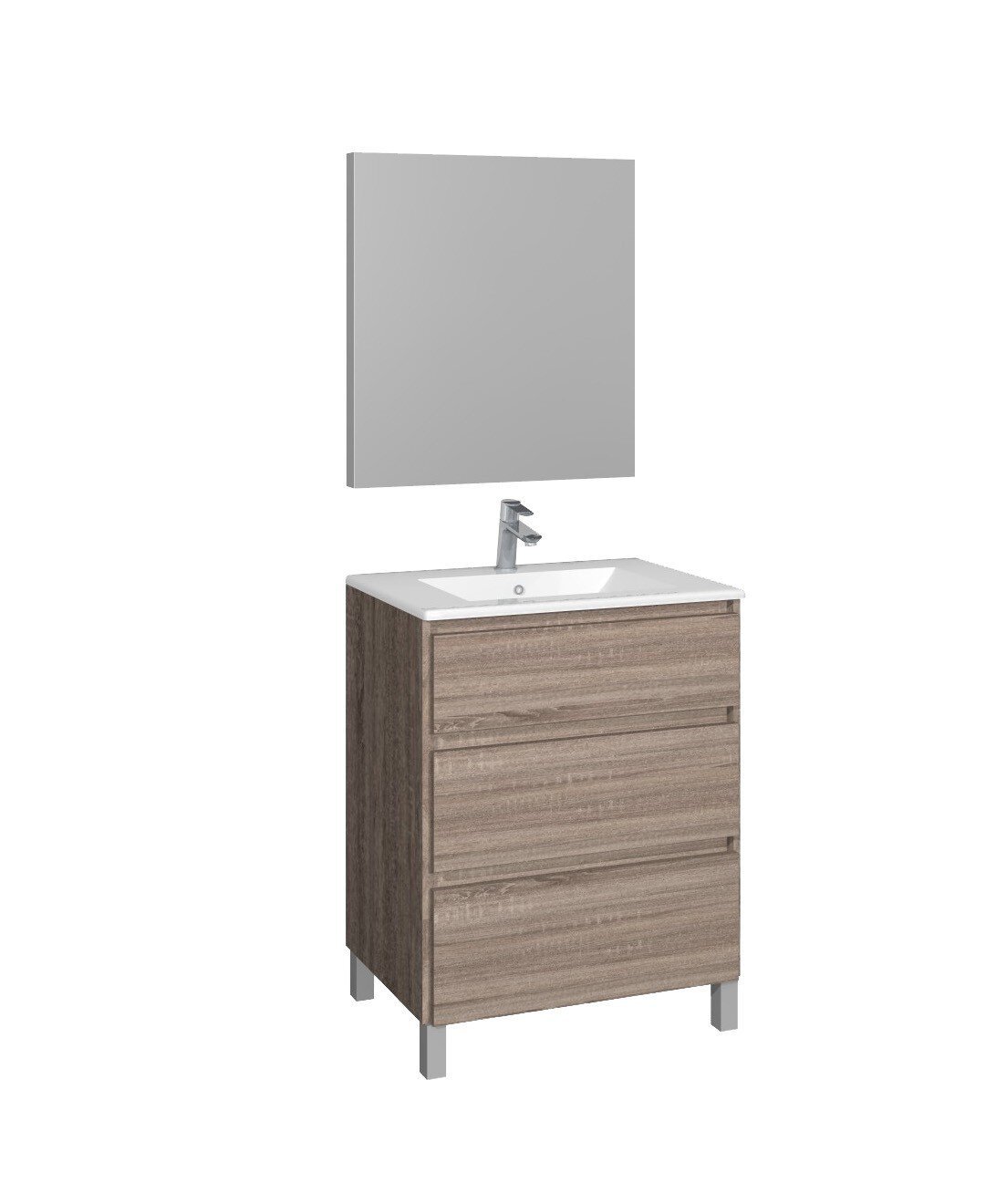Conjunto formado por un mueble a suelo MANNING de 70 cm en acabado roble cambrián. Lavabo CÓDIGO II de 70 cm y espejo rectangular liso GO de 60×70 cm.