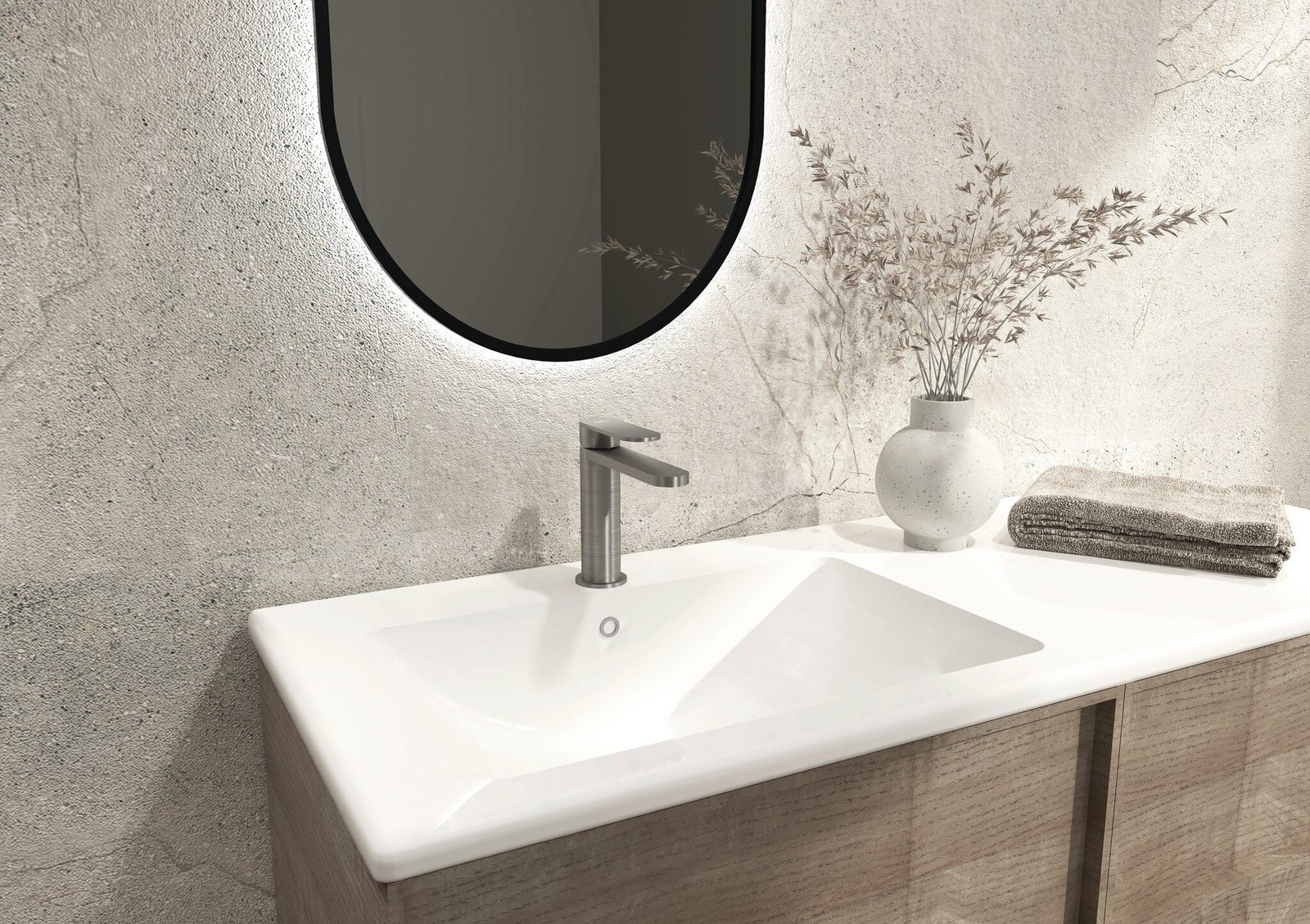 El modelo incluye un aireador integrado, que reduce salpicaduras y mejora la eficiencia del consumo de agua, aportando un chorro uniforme y cómodo. Gracias a su sistema monomando, es posible regular con precisión el caudal y la temperatura del agua con un solo gesto, proporcionando confort en el uso diario.