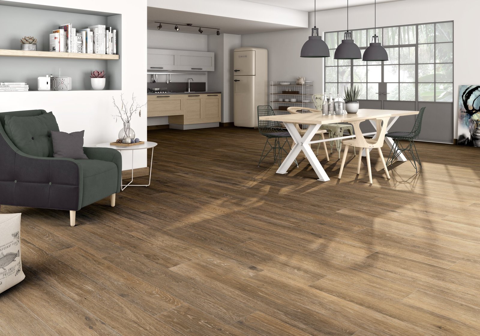 El pavimento de la serie NATURFAINT en color nogal i de textura madera, hará que tu ambiente automáticamente adopte un estilo rústico i clásico. Una textura madera pero con toda la comodidad de que sea de material porcelánico y con nivel de antideslizamiento C1 para evitar accidentes inesperados en el interior de tu hogar. Apto también para terrazas cubiertas, para que puedas trasladar el interior de tu espacio al exterior. Crea un ambiente acogedor con las cerámicas de esta serie.
