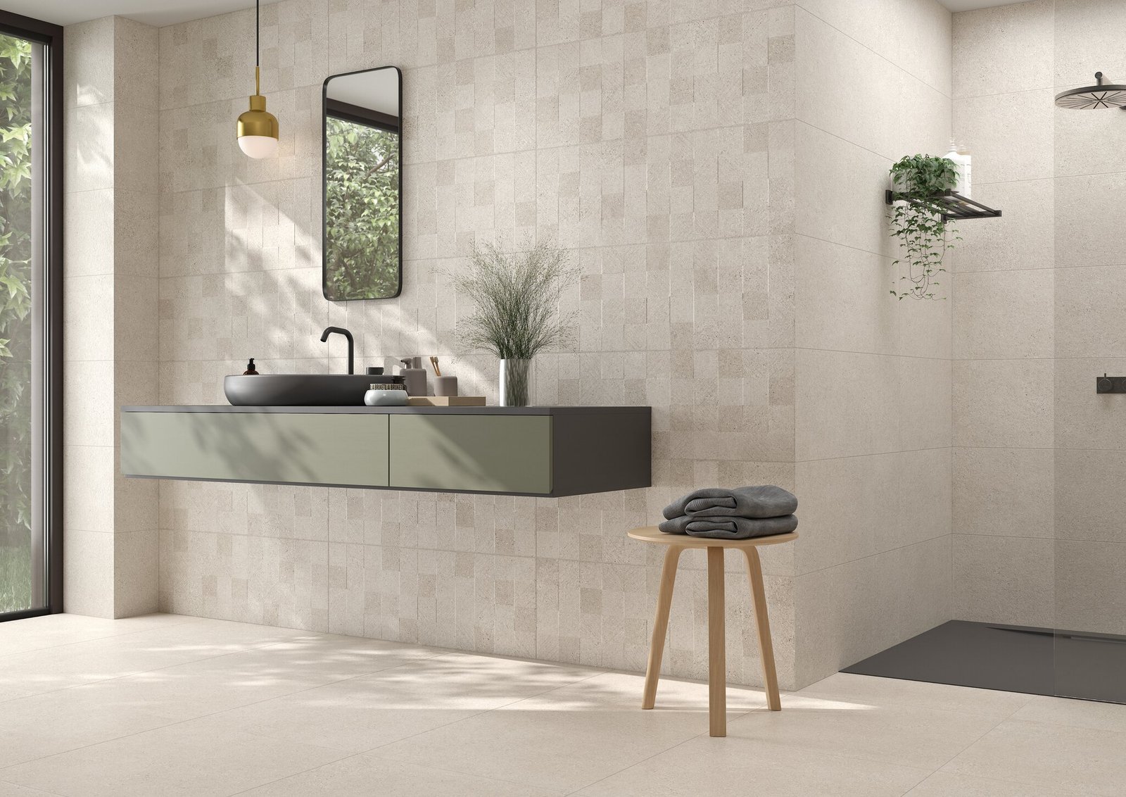 La cerámica de la marca Terradecor en color arena y con textura es perfecta para recrear el espacio con un diseño costero para que sientas paz inmediata y sensación de tranquilidad. Una cerámica resistente para que dure contigo por muchos años más.