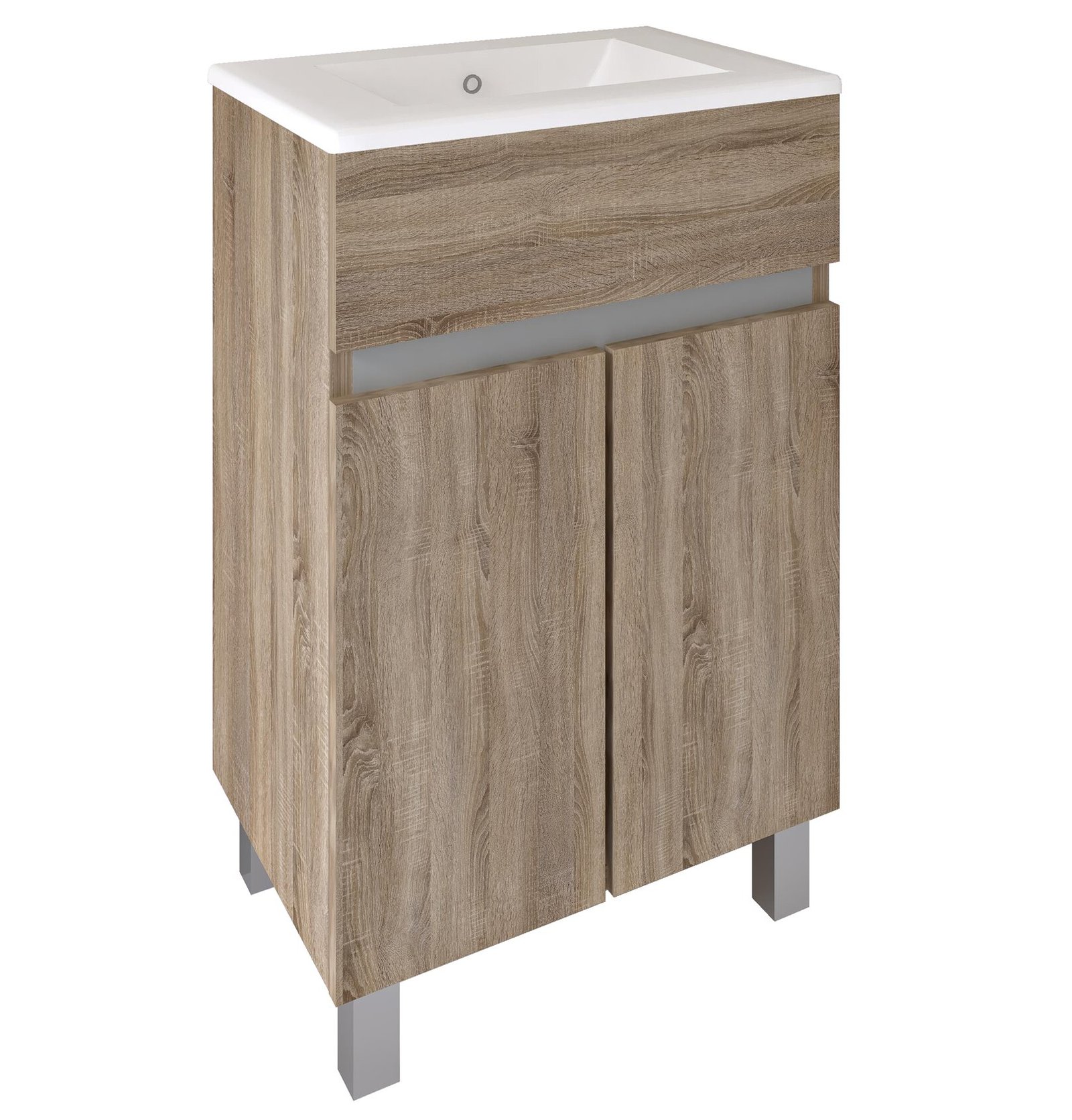 Gana espacio de almacenaje en tu pequeño cuarto de baño con el práctico y moderno mueble MATTY de color roble cambrián, que siguiendo el dibujo de las vetas de la madera, aportará calidez a tu baño. El mueble mide 50 cm de ancho, 82 de alto y 38 cm de profundidad y está fabricado en melamina hidrófuga y tratada contra la humedad. Cuenta de un amplio armario con estante interior y doble puerta con tiradores uñeros, perfecto para tener siempre a mano y en orden los artículos y productos que necesitas en tu rutina diaria. Encajará a la perfección con el lavabo CÓDIGO II de fondo reducido.