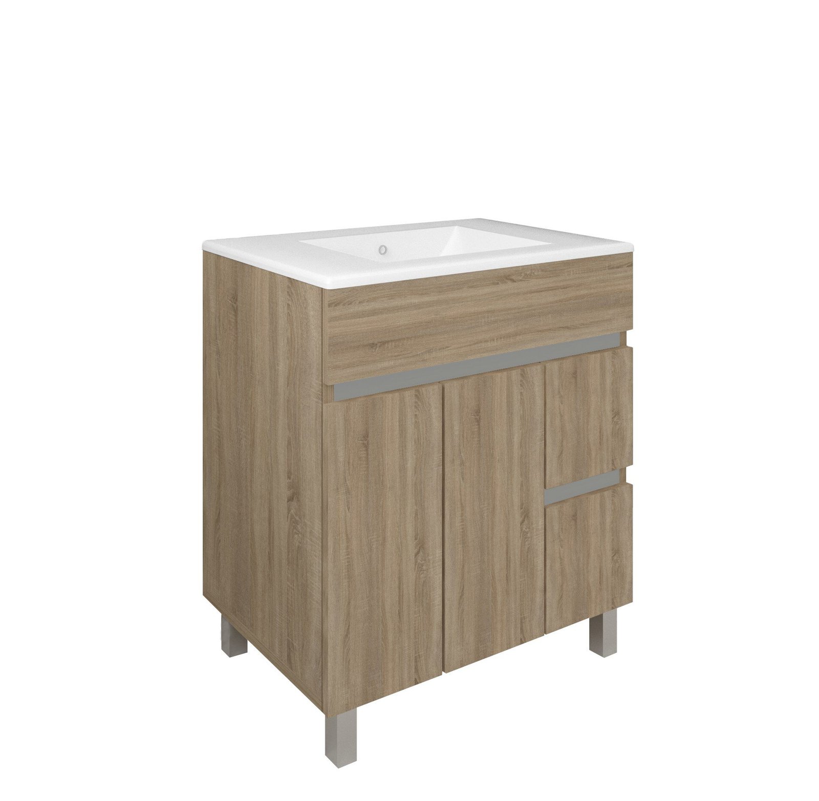 Consigue más espacio de almacenaje en tu baño con el moderno y funcional mueble de baño MATTY de Baho, en acabado roble cambrián que sigue el dibujo de las vetas de la madera y le dará calidez a tu baño. El mueble mide 70 cm de ancho, 82 de alto y 45 cm de profundidad y está fabricado en melamina hidrófuga y tratada contra la humedad. Además de un amplio armario con estante interior y doble puerta, cuenta con 2 cajones uñeros de cierre amortiguado perfectos para los artículos y productos más pequeños que necesitas en tu rutina diaria. Encajará a la perfección con los lavabos CÓDIGO II, PRISMA y ARNO.