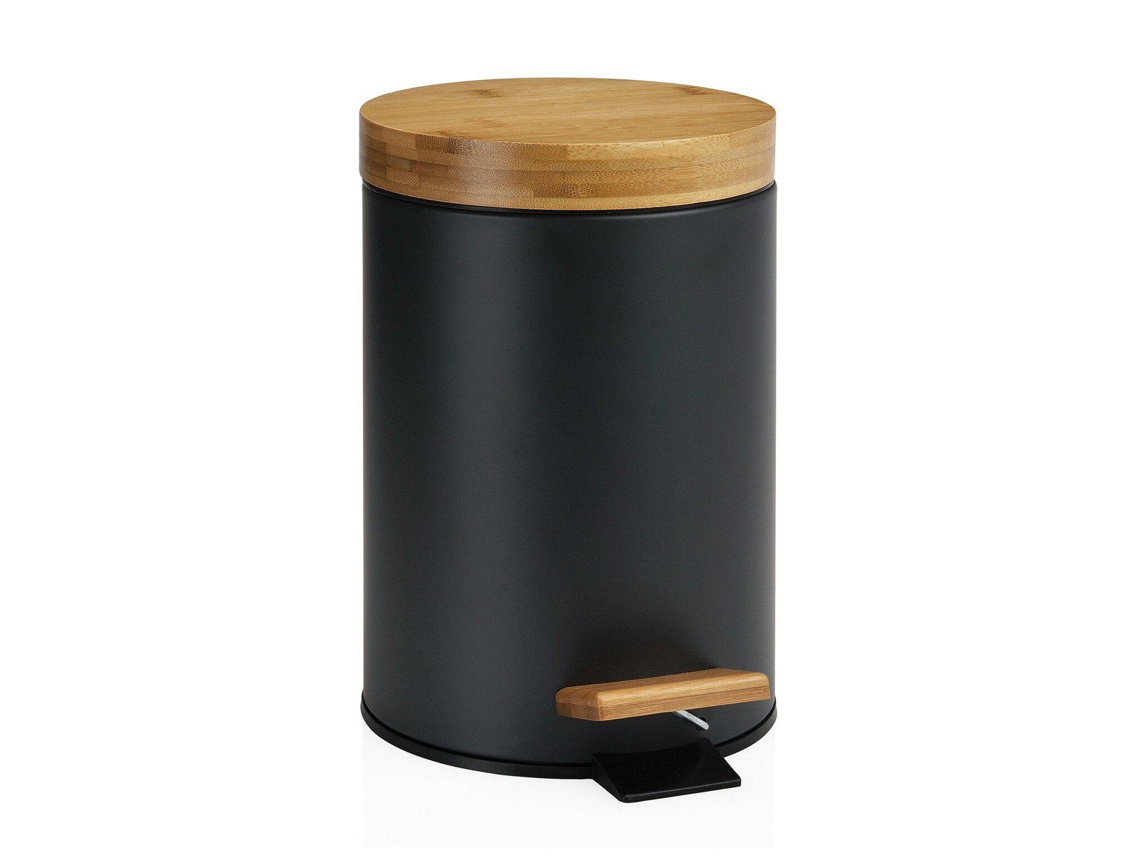 Papelera de baño negra de bambú 3L