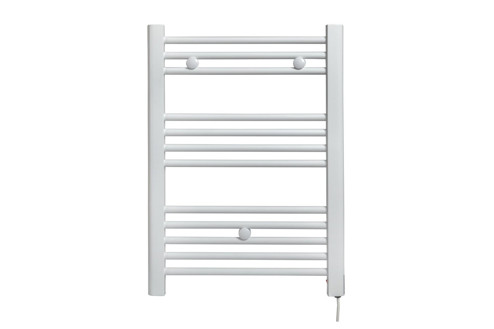 El radiador eléctrico BRISA es el complemento perfecto para mantener una temperatura confortable en tu baño y además podrás usarlo para calentar las toallas o acelerar su secado. Está fabricado en acero lacado en blanco y dispone de 12 tubos. Gracias a su ligereza y tamaño reducido de 70 x 50 cm, se adapta a cualquier baño. Dispone de cable térmico y botón de encendido y apagado. El radiador, con una potencia de 250w, funciona con una resistencia eléctrica que permite que se caliente de forma uniforme en solo 3 minutos y no necesita termostato.