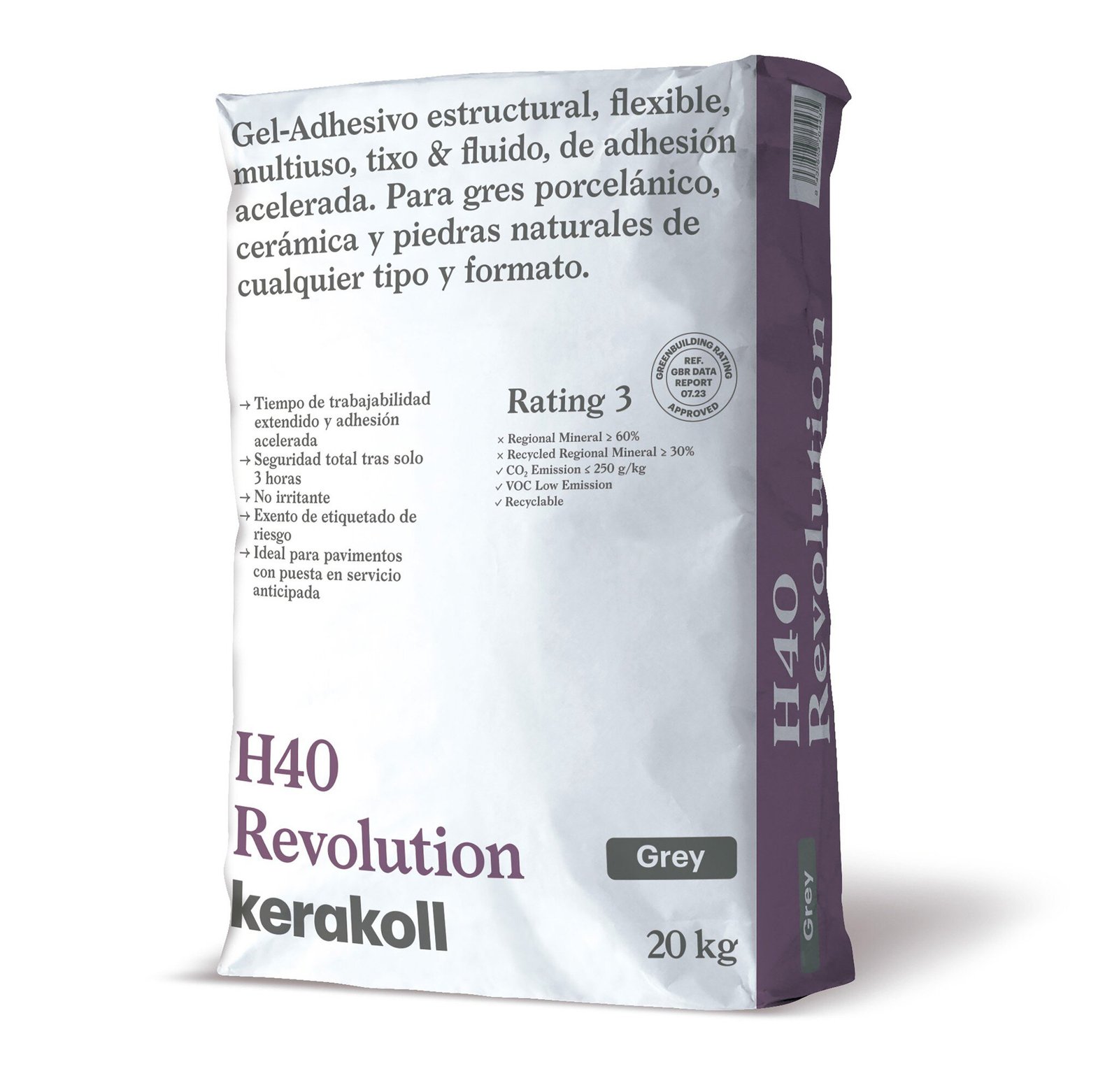 Saco Gel Adhesivo cementoso flexible Kerakoll H40 Revolution Gris ref. 76443